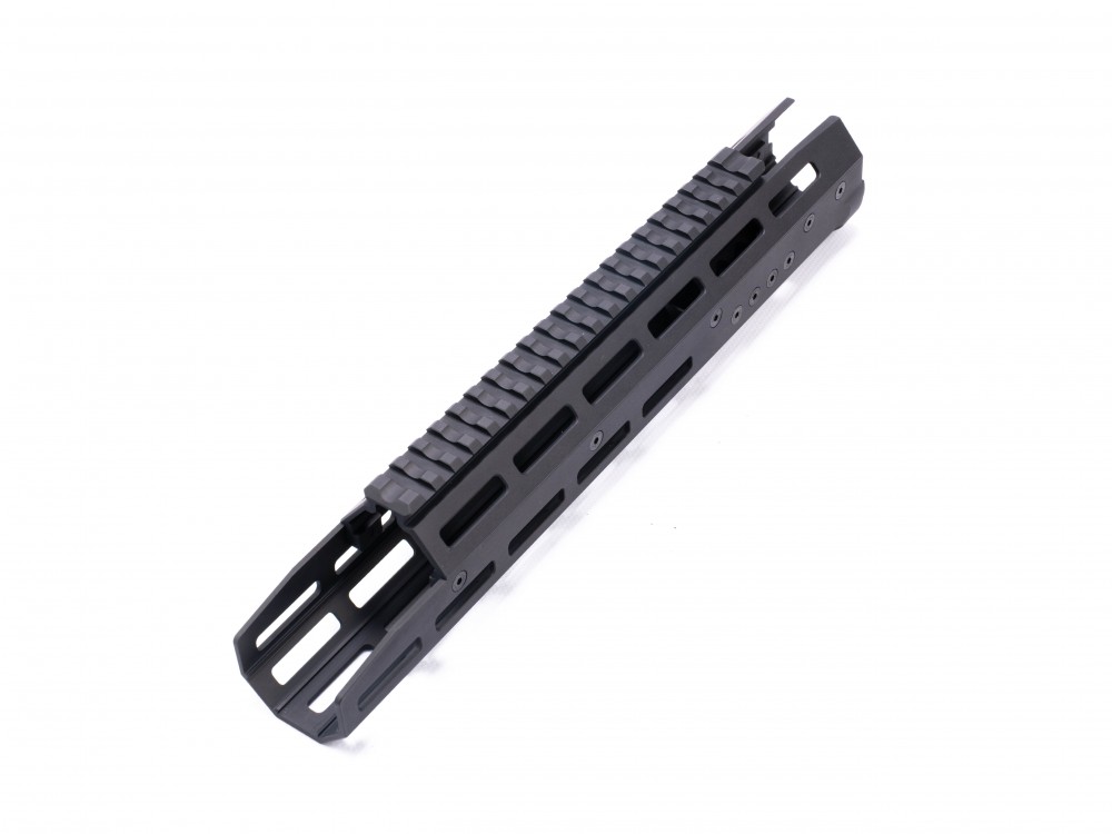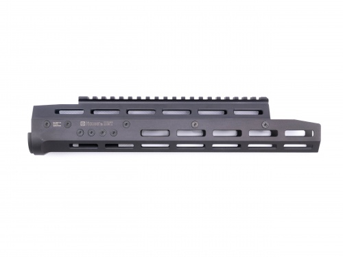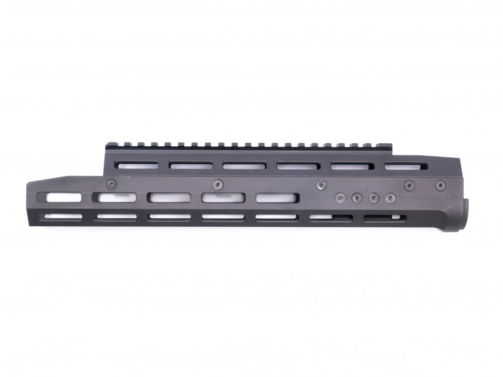 Для крепления сверху имеется планка Пикатинни (Picatinny), на всех остальных гранях стандарт крепления MLok. На цевье можно установить предобъективные насадки, сошки ближе к срезу ствола, рукоятки, различные приборы, такие как ЛСУ, дальномеры и др.